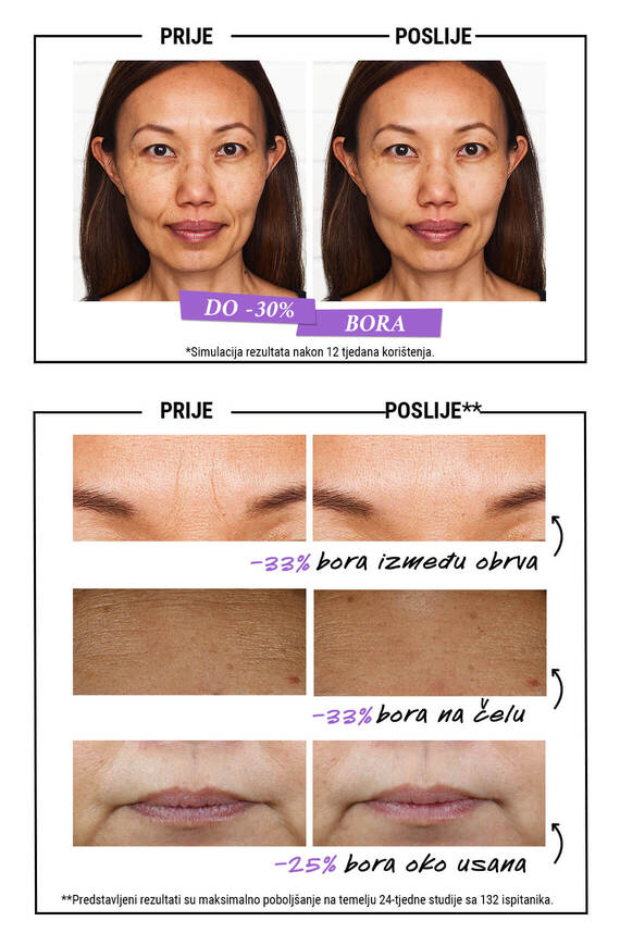 - Do -31% manje vidljivih sitnih bora za odgađanje prijevremenih znakova starenja