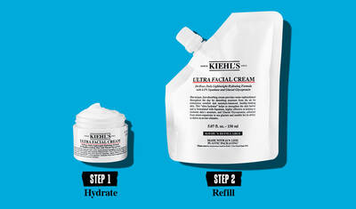 HIDRATIZIRAJTE KOŽU: Nakon čišćenja i toniziranja nanesite malu količinu hidratantne kreme za lice. Kada se pakiranje isprazni, upotrijebite refill proizvod kako biste napunili Ultra Facial Cream do 3 puta.